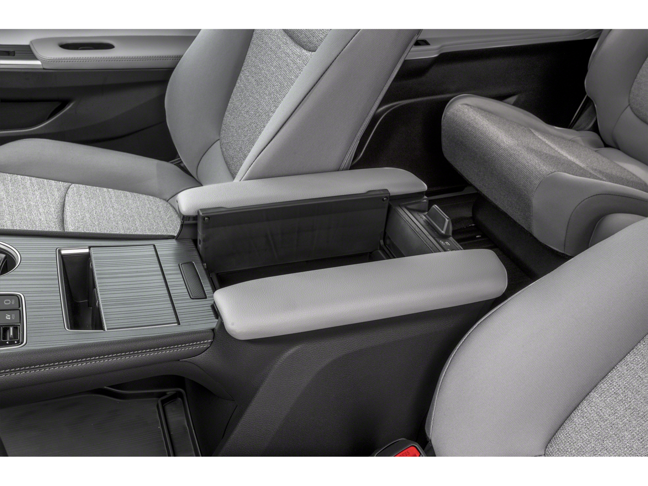 • Fixed center console, pass-through, illuminated storage compartment, and four cup holders